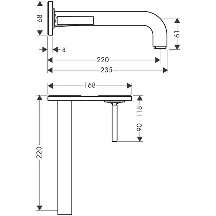 Axor Citterio Смеситель для раковины 220, встраиваемый, излив: 22см., цвет: шлифованная медь