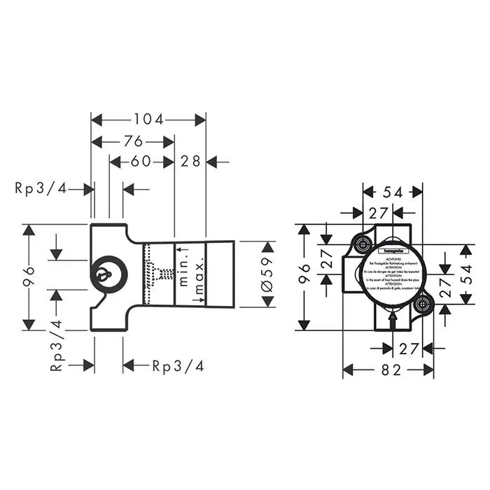 Axor Cкрытая часть для запорного и переключающего вентиля Trio Stop 3/4"