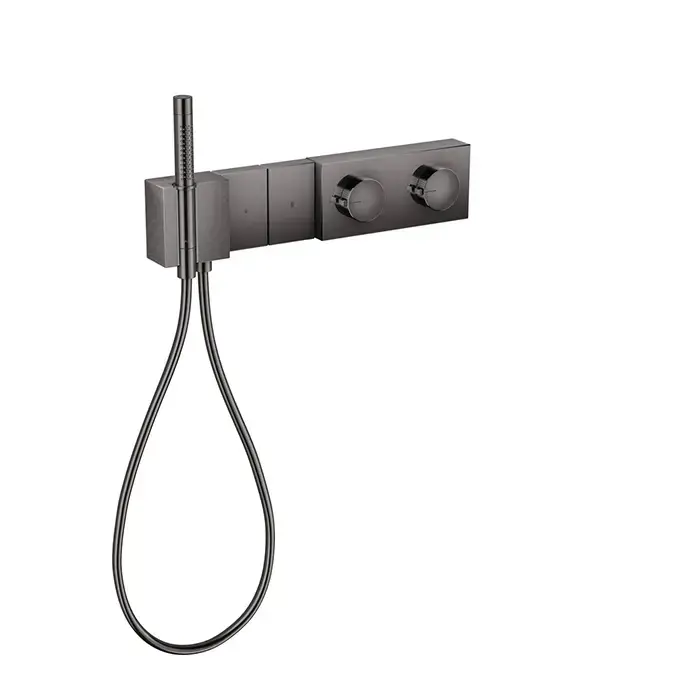 Axor Edge Смеситель для душа 470/100, встраиваемый, термостат, на 2 источника, с ручным душем, алмазная огранка, внешняя часть, цвет: черный