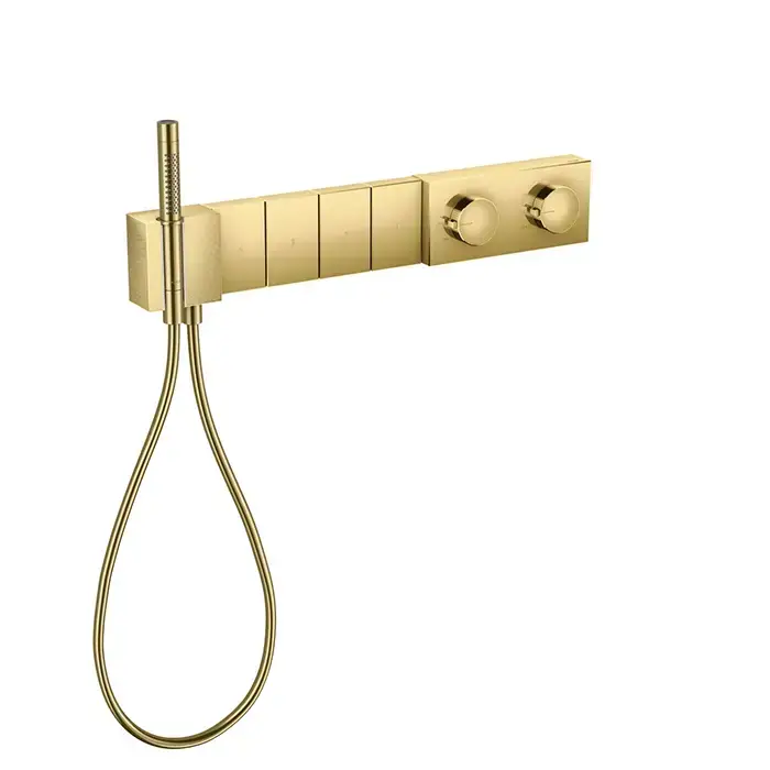 Axor Edge Смеситель для душа 610/100, встраиваемый, термостат, на 4 источника, с ручным душем, алмазная огранка, внешняя часть, цвет: золото