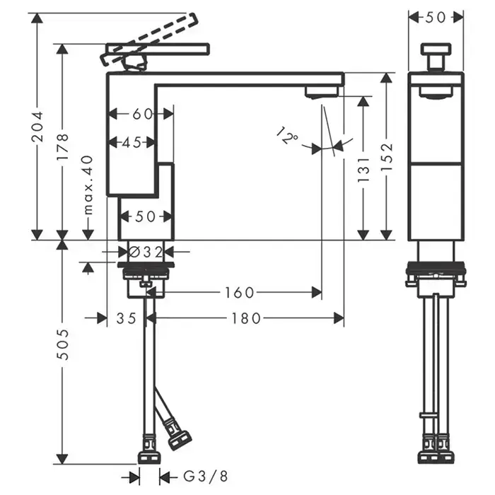 Axor Edge Смеситель для раковины, на 1 отв., с донным клапаном push/open, излив 160мм, алмазная огранка, цвет: хром