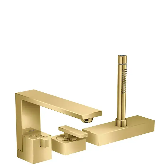 Axor Edge Смеситель на борт ванны, на 3 отв., с ручным душем, излив 210мм, алмазная огранка, цвет: золото