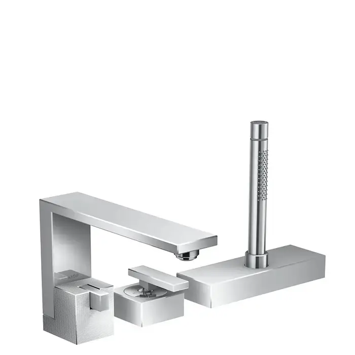 Axor Edge Смеситель на борт ванны, на 3 отв., с ручным душем, излив 210мм, алмазная огранка, цвет: хром