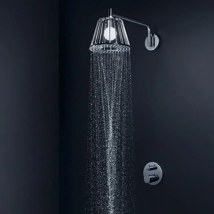 AX LampShower Верхний душ, Ø 275мм, 1jet, с настенным держателем, с подсветкой, дизайн Nendo, цвет: хром