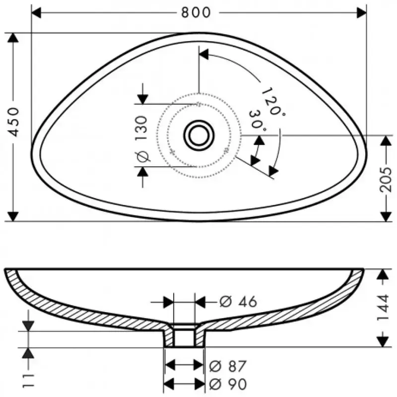 Axor Massaud Раковина 80х45 см, без отв., накладная, цвет: белый