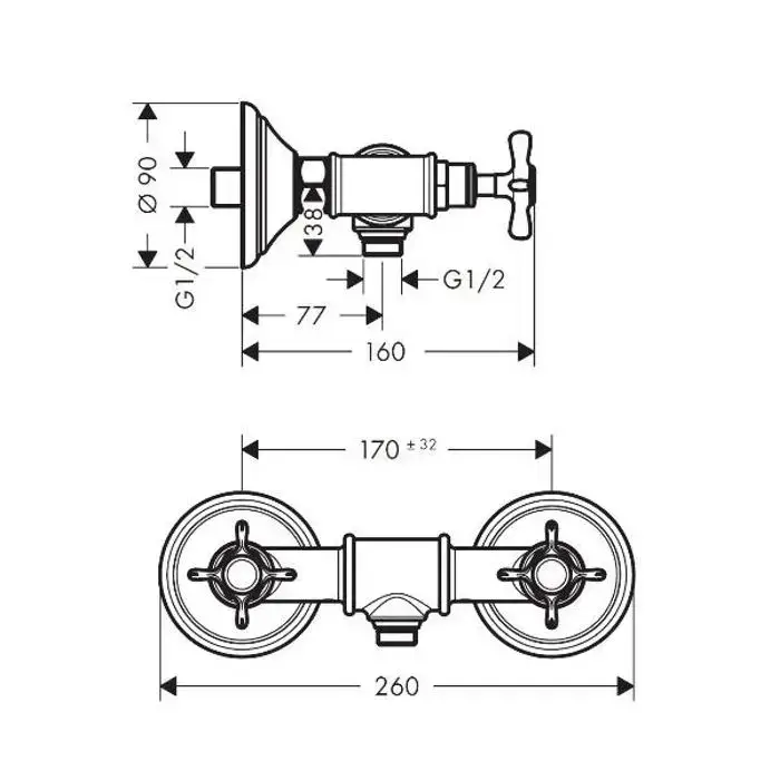 Axor Montreux, Смеситель для душа, с двумя рукоятками, цвет: хром