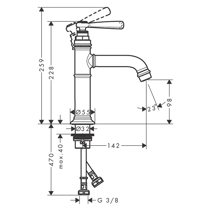 Axor Montreux Смеситель для раковины 30, на 3 отв., с донным клапаном, цвет: полированный черный хром