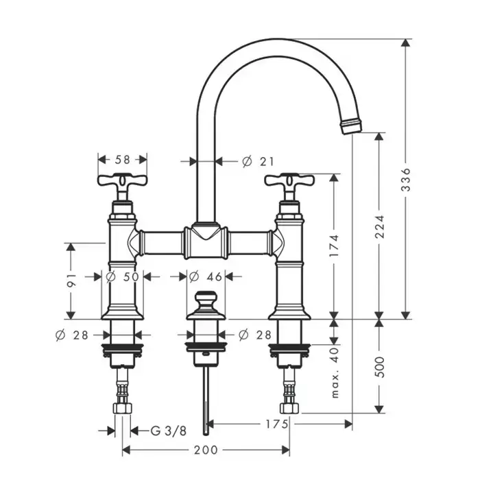 Axor Montreux, Смеситель для раковины 220,с двумя рукоятками, с донным клапаном, цвет: никель шлифованный