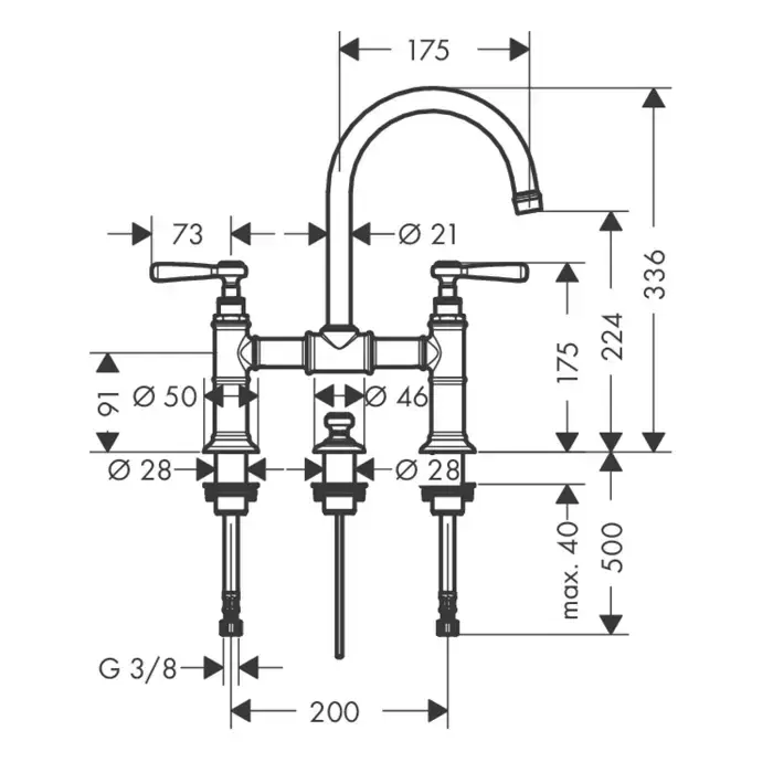 Axor Montreux Смеситель для раковины 30, на 3 отв., с донным клапаном, цвет: полированный черный хром