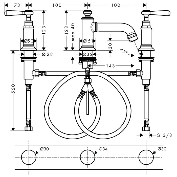Axor Montreux Смеситель для раковины 30, на 3 отв., с ручкой: рычаг, с донным клапаном, цвет: шлифованный черный хром