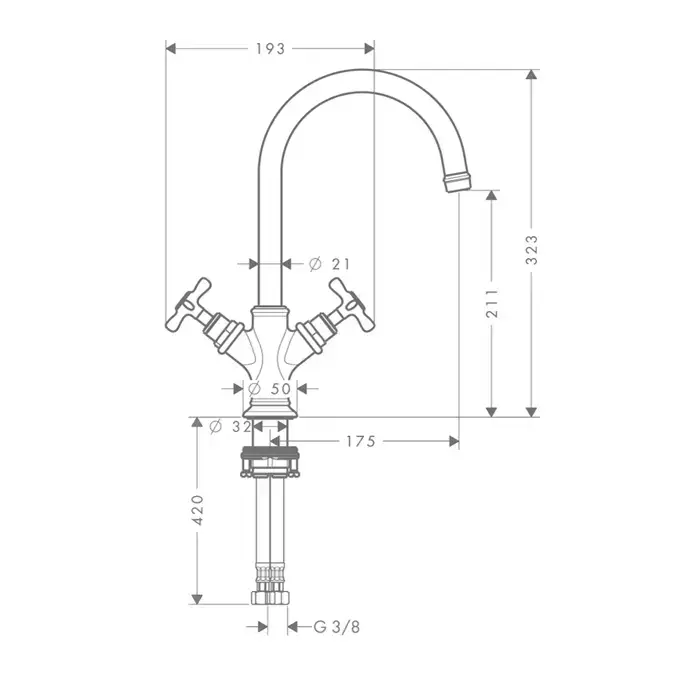 AX Montreux Смеситель для раковины 210 на 1 отв., излив 175мм, без донного клапана, цвет: полированное золото