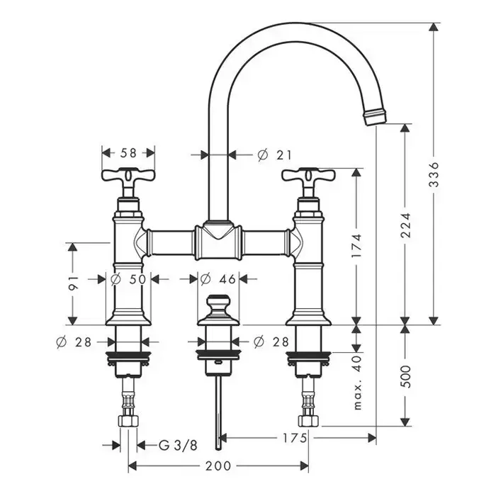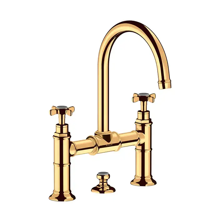 AX Montreux Смеситель для раковины 220 на 3 отв., излив 175мм, со сливным гарнитуром, цвет: полированное золото