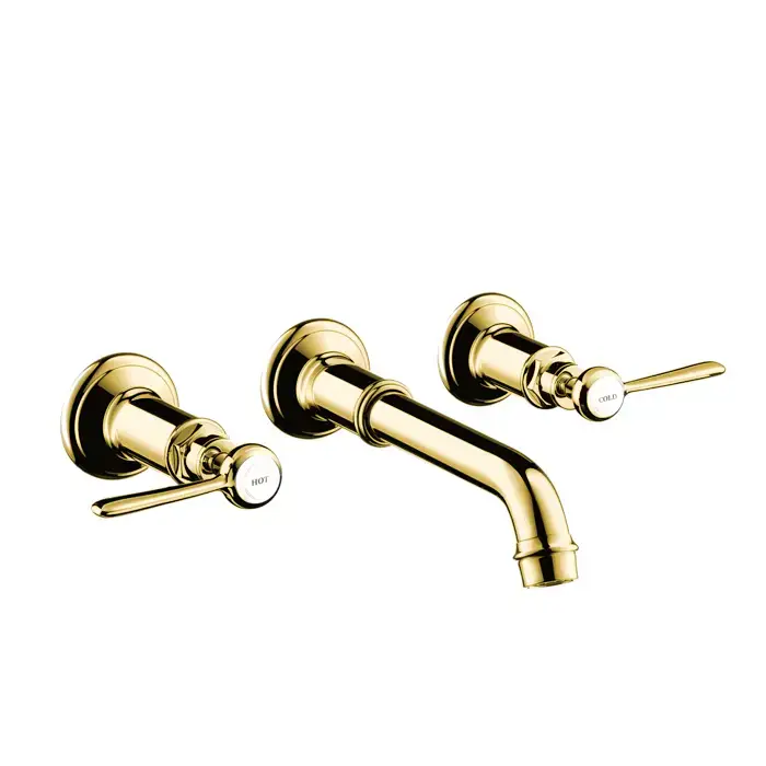Axor Montreux Смеситель для раковины, настенный, на 3 отв., излив 165-225мм, с незапираемым сливным набором (рычажные рук.), цвет: полированное золото