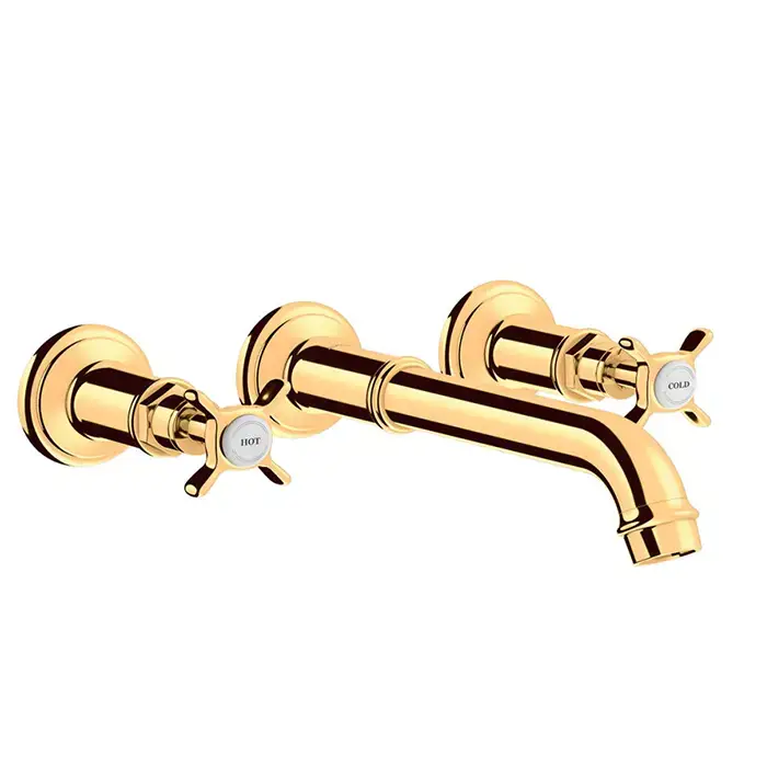 Axor Montreux Смеситель для раковины, настенный, на 3 отв., излив 165-225мм, с незапираемым сливным набором, внешняя часть, цвет: полированное золото