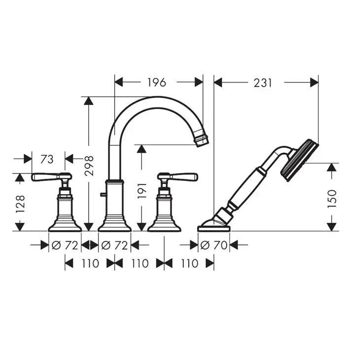 Axor Montreux Смеситель на край ванны, на 4 отв., с ручным душем, цвет: полированное золото