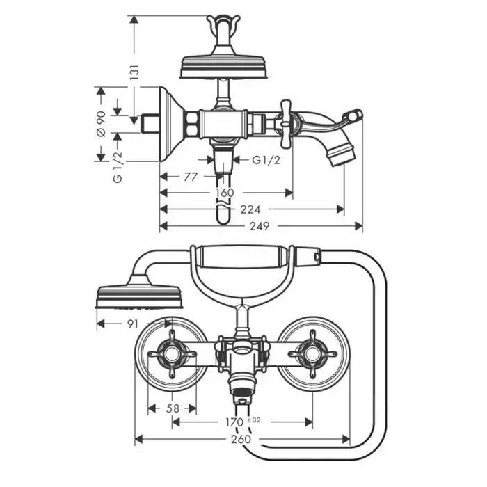 Axor Montreux, Смеситель для душа, с двумя рукоятками, цвет: хром