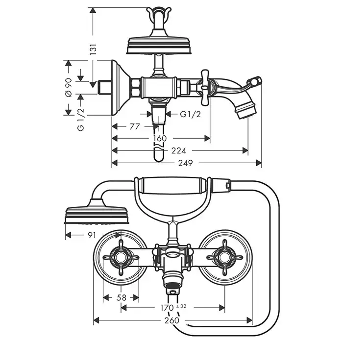 Axor Montreux, Смеситель для душа, с двумя рукоятками, цвет: хром