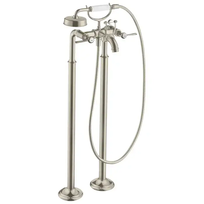 AX Montreux Смеситель для ванны, с двумя рычаговыми рукоятками, напольный, с ручным душем, (внешняя часть), цвет: шлифованный никель