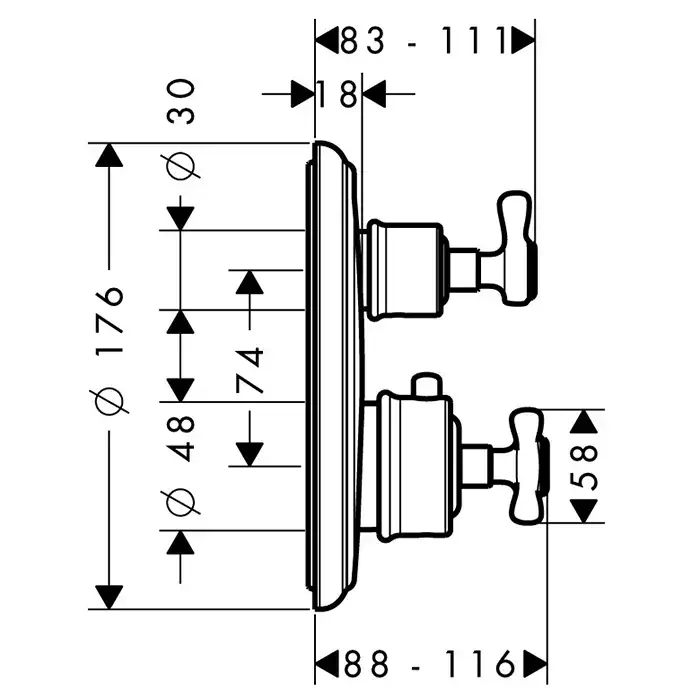 Axor Montreux, Смеситель для душа, с двумя рукоятками, цвет: хром