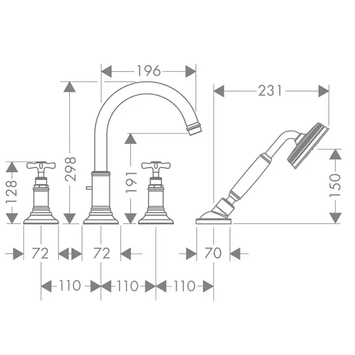 Axor Montreux Смеситель для ванны (2 ручки) с душевым комплектом, цвет: хром