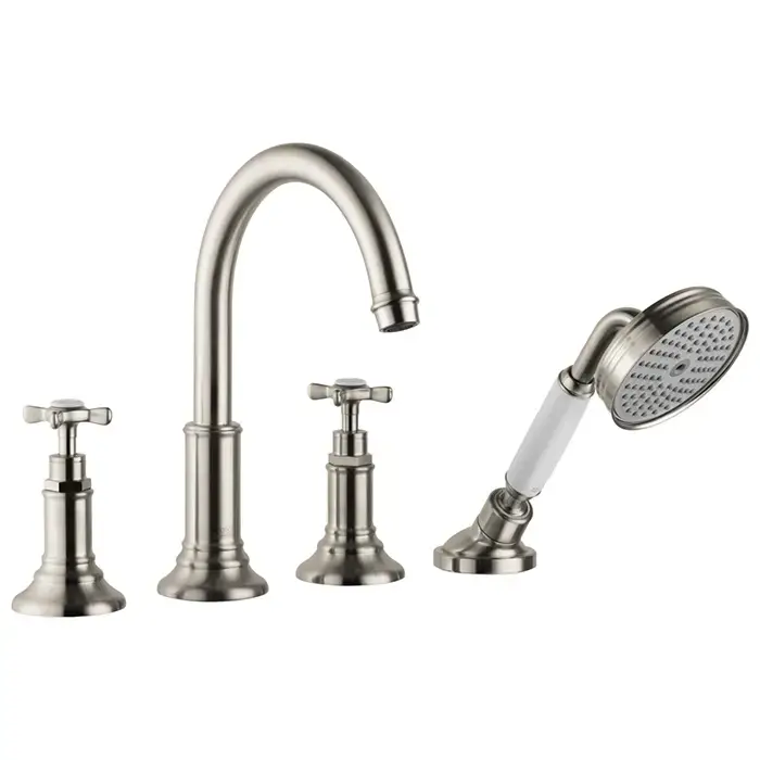 AX Montreux Смеситель на борт ванны, на 4 отв., с ручным душем, монтаж на плитку,(внешняя часть), цвет: шлифованный никель