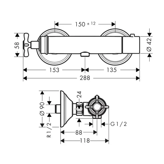 Axor Montreux, Смеситель для душа, с двумя рукоятками, цвет: хром