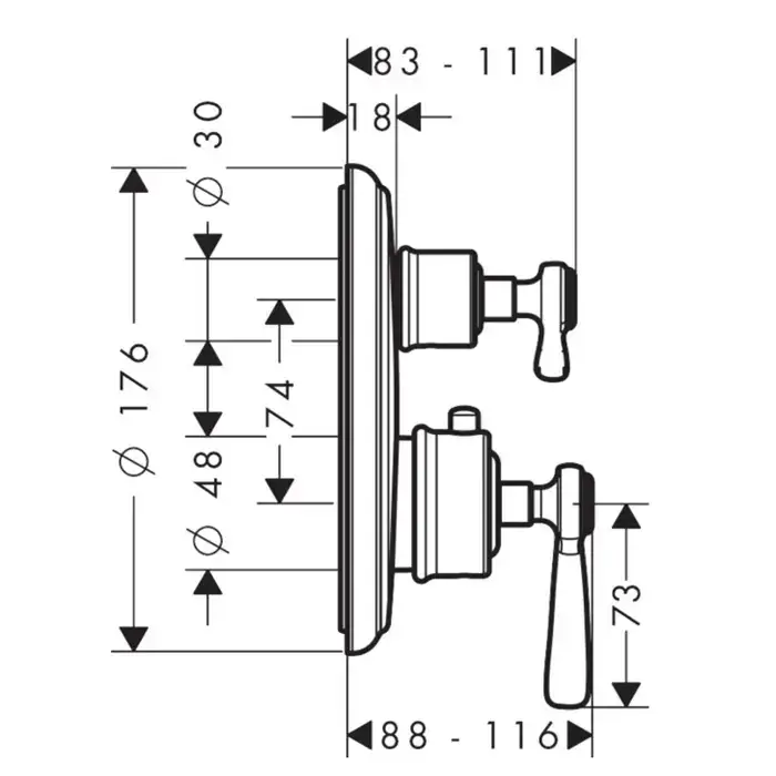 Axor Montreux, Смеситель для душа, с двумя рукоятками, цвет: хром