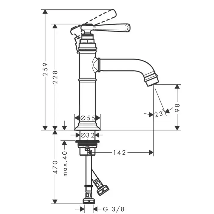 Axor Montreux Смеситель для раковины 30, на 3 отв., с донным клапаном, цвет: полированный черный хром