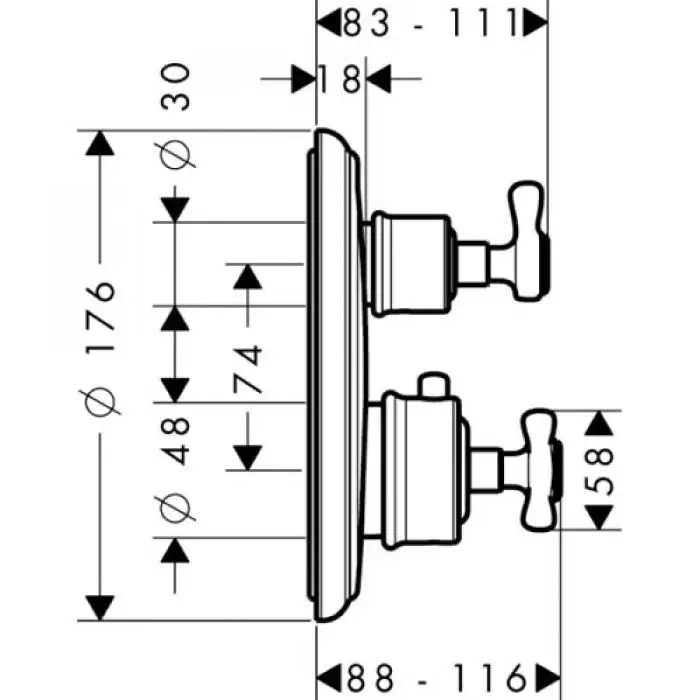 Axor Montreux, Смеситель для душа, с двумя рукоятками, цвет: хром