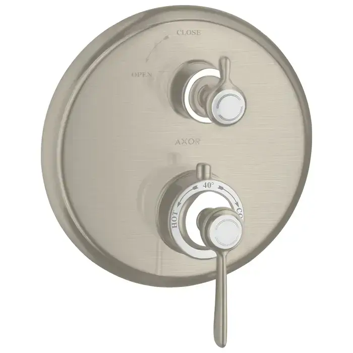 Axor Montreux, Термостат с запорным вентилем, СМ, с рычаговой рукояткой, внешняя часть, цвет: никель шлифованный
