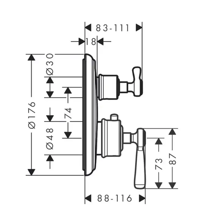 Axor Montreux Смеситель для душа с термостатом и запорно переключающим вентелем, внешняя часть, цвет: хром