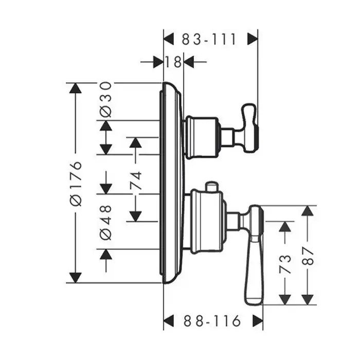 Axor Montreux, Смеситель для душа, с двумя рукоятками, цвет: хром