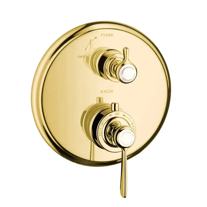 Axor Montreux Термостат с запорным вентилем, СМ, с рычаговой рукояткой, внешняя часть, цвет: полированное золото