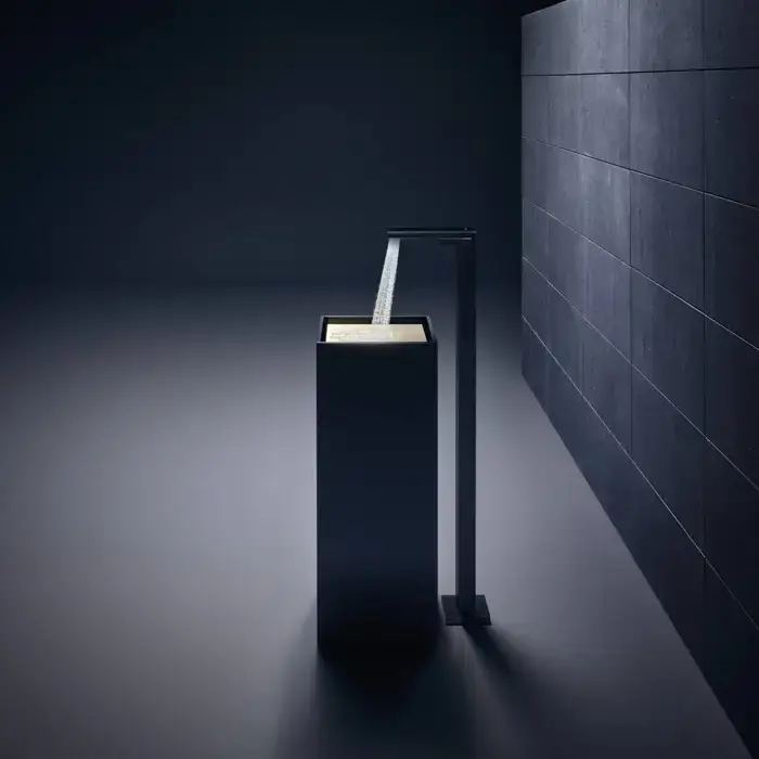 AX MyEdition Смеситель для раковины напольный, на 1 отв., излив 245мм, со сливным гарнитухромром (без пенели), цвет: хром