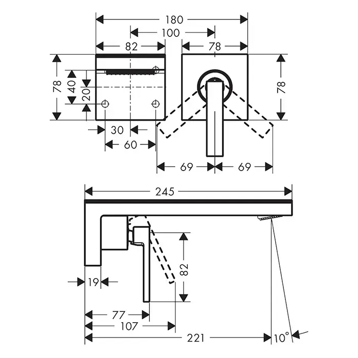 Axor MyEdition Смеситель для раковины, настенный, на 2 отв, излив 245мм., внешняя часть, цвет: хром/зеркальное стекло