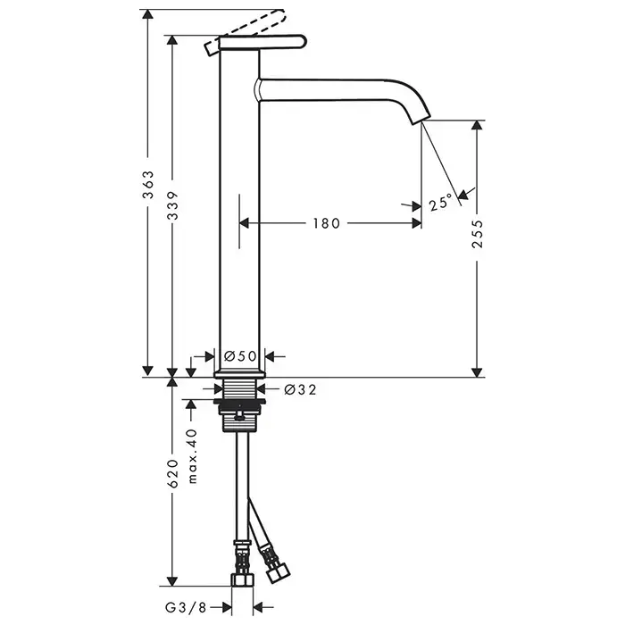 Axor One Смеситель для раковины, встраиваемый, излив: 22см., цвет: сталь