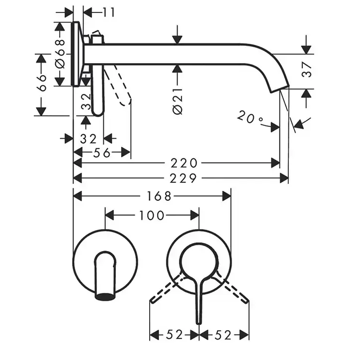 AX One Смеситель для раковины, встраиваемый, излив 220 мм, (внешняя часть), цвет: хром