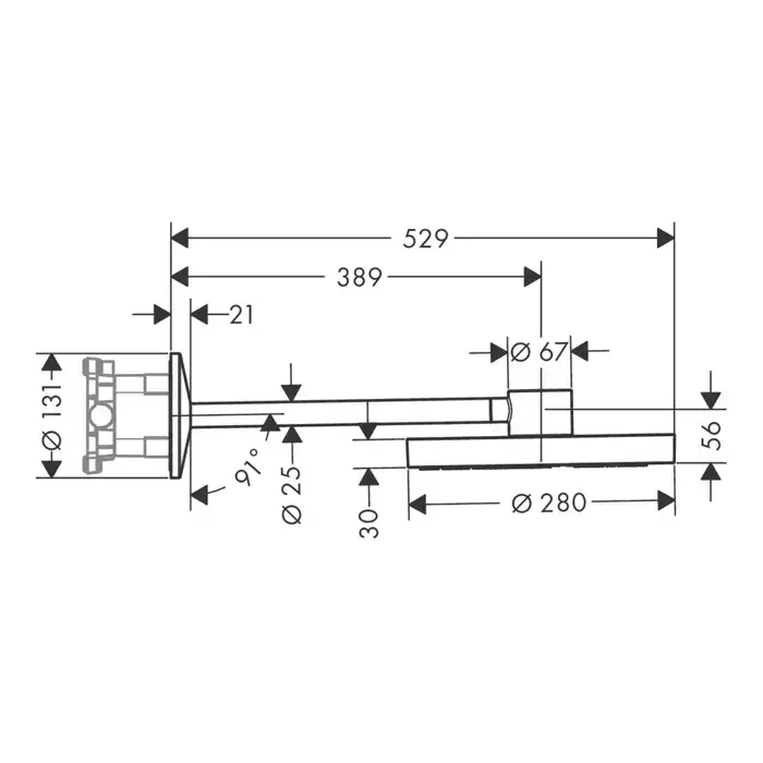 AXOR ONE Верхний душ Ø280 мм., с настенным держателем 389 мм., 2 режима, цвет шлифованное золото