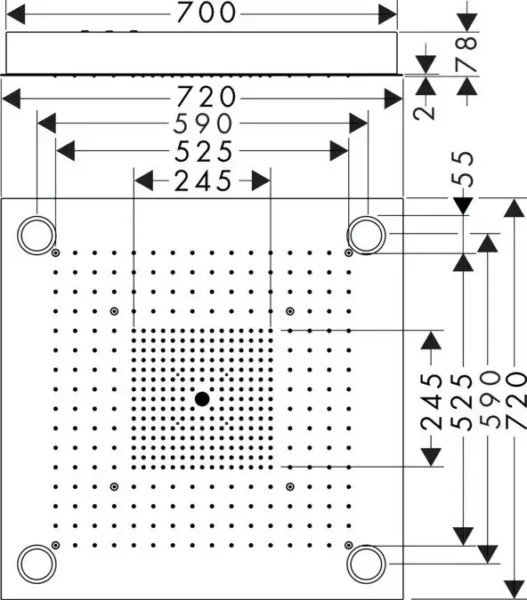 Axor ShowerSelect Верхний душ, 97х97см., встраиваемый в потолок, цвет: сталь