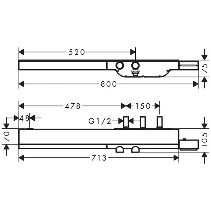 Axor Showers Настенный термостат для ванны, с полкой 713х70мм, 2 потреб., цвет: хром