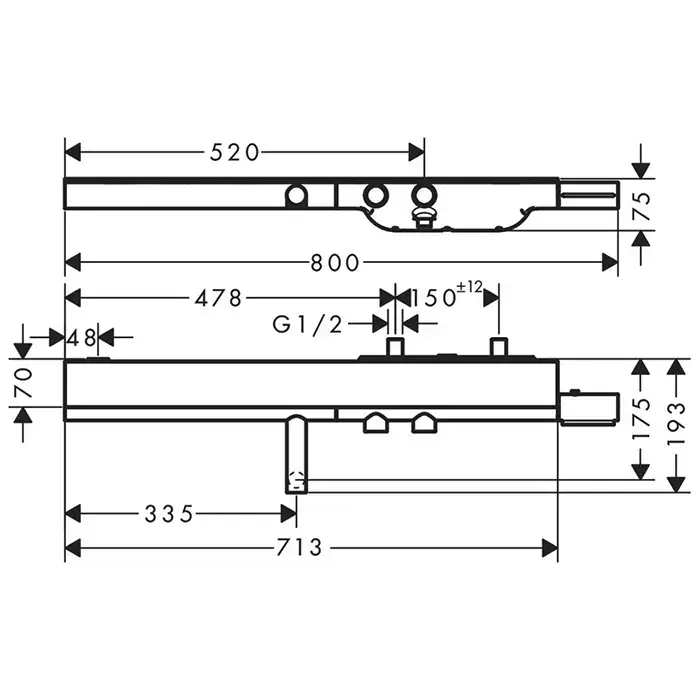 Axor Showers Настенный термостат для ванны, с полкой 713х70мм, 2 потреб., цвет: хром