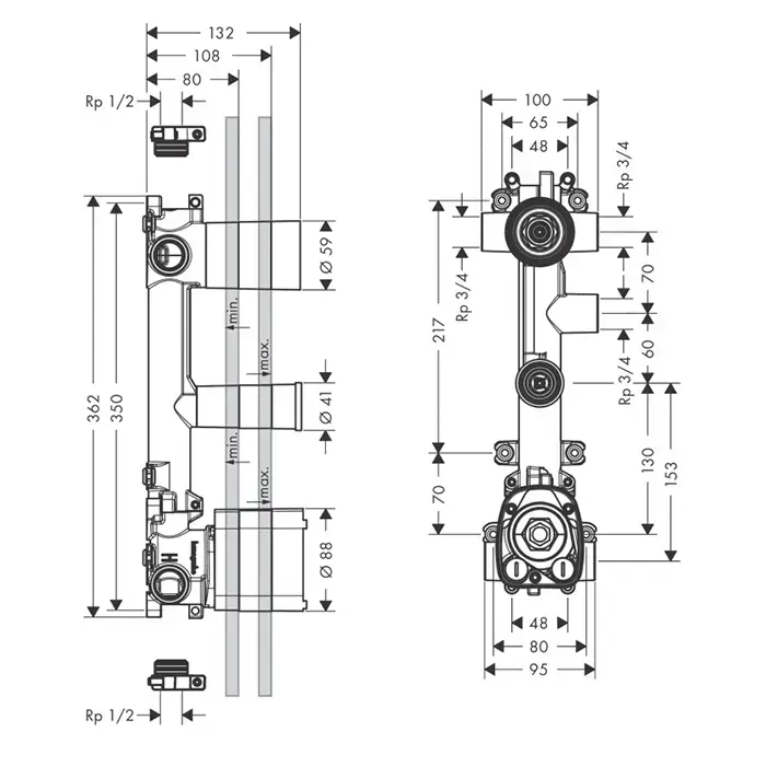 Axor ShowerSelect Скрытая часть для термостата 38x12 c 3 розетками, для 3 потреб.