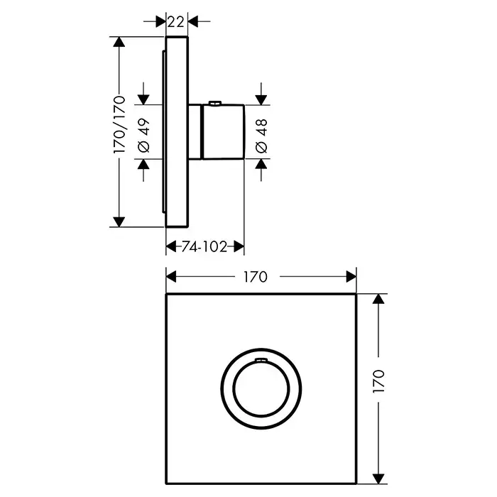 AX ShowerSelect Встраиваемый термостат для душа, 1 потреб, (внешняя часть), цвет: полированный черный хром