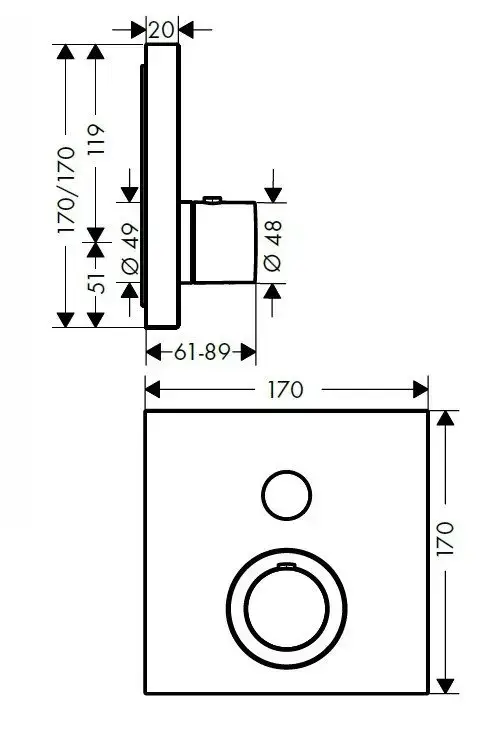 Axor ShowerSelect Термостатический смеситель с запорным клапаном, квадратный, внешняя часть, цвет: хром