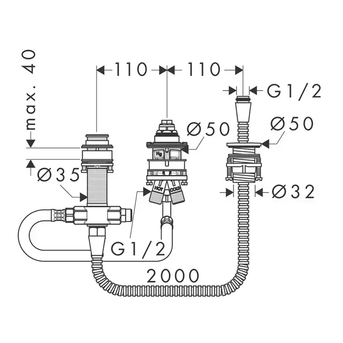 HG Скрытая часть смесителя на 3 отверстия на борт ванны