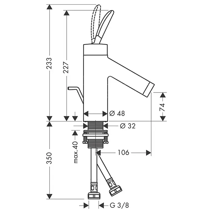 Axor Starck Cмеситель для раковины, на 1 отв, с донным клапаном, цвет: сталь