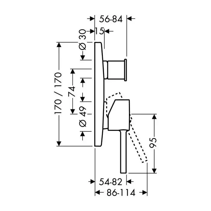 AX Starck Встраиваемый смеситель для ванны однорычажный с защитой по станд. EN1717 (внешняя часть), цвет: хром