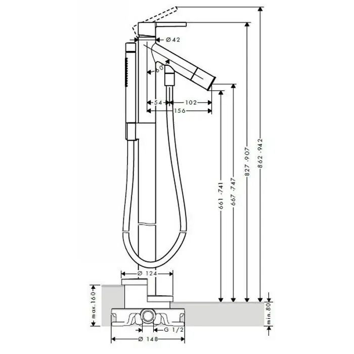 AX Starck Смеситель для ванны, однорычажный, с ручным душем, напольный, (внешняя часть), цвет: хром