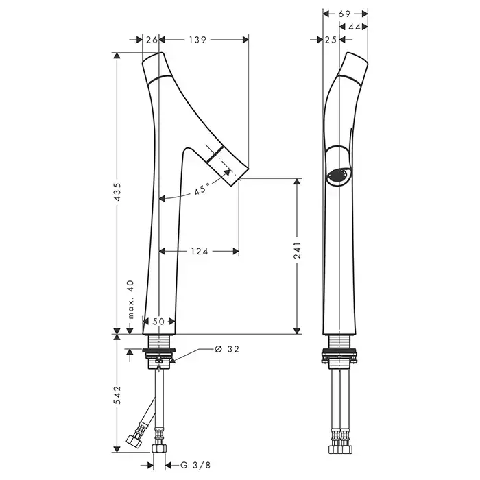 Axor Starck Смеситель для кухни 270, на 1 отв., с выдвижным изливом, Eco, цвет: сталь