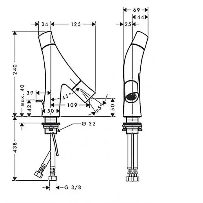 AX Starck Organic Cмеситель для раковины 50, на 1 отв., излив 109мм, с 2 рукоятками, с донным клапаном, цвет: хром